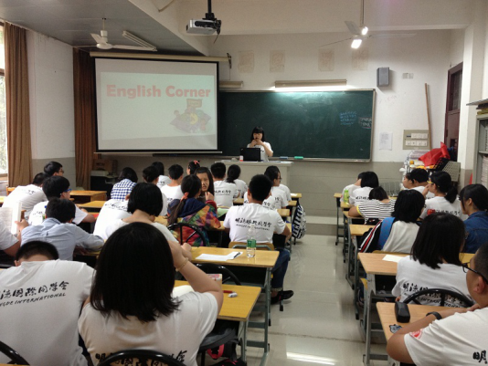 2015年7月11日,2015级新生夏令营活动进行到第五天,期待已久的英语角活动来袭,面对雅思老师Cassie给出的各项考验,新一届高一同学从《词汇大比拼》、到《看英文谚语猜猜猜》、再到《英文绕口令》、最后《看图描述》,一路过关斩将,屡创佳绩。