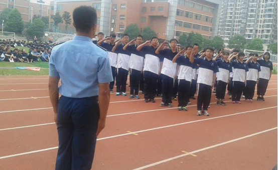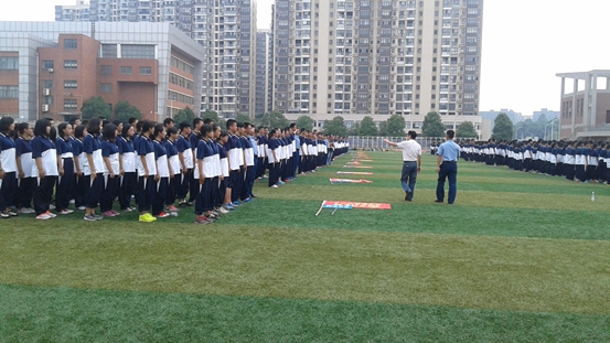 2015年8月27日下午,明德中学高一新生军训会操及军训表彰大会在明德操场如火如荼地进行。国际部的同学们在会操期间一个个精神抖擞,展示出了国际部新生斗志昂扬的精神面貌。伴随着教官的口令声,从稍息立正、向左向右转到齐步跑步走,都有条不紊,将这些预定项目展现得淋漓尽致。短短四天的军训,在教官的严格要求和老师的关怀鼓励中,国际部同学的成就有目共睹。最后,我们在会操表演中取得了二等奖的好成绩,赢得了领导、老师和其他班级同学的喝彩。