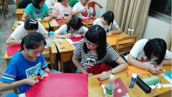 国际部同学们学剪抗战胜利花