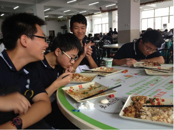 在用餐区,老师看到了咱们国际部用餐的同学: