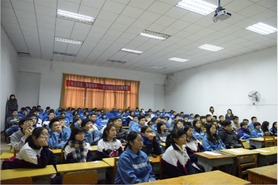 秦老师先以视频介绍了湖南抗战简史,然后用PPT向师生们展示了这四次会战的惨烈和壮阔:一群群铁骨铮铮的中国军人,用自己的生命捍卫自己的家园,他们之中,有的人当场战死,遗躯与尘土融为一体;有的人身上留下永恒的印记,鲜血染红大地······在秦老师的讲解下,历史的画面波澜壮阔地展现在全场师生面前。