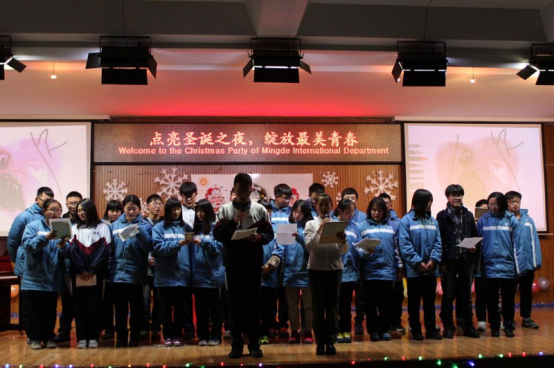 12月24日平安夜,明德讲堂彩灯缤纷,音乐飞扬。在这里,正进行着明德中学国际部2015年圣诞晚会。