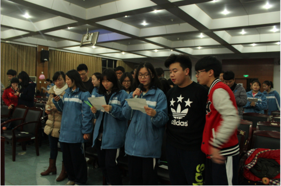 晚会开始,八位主持人悉数登?。ù幼笾劣曳直鹞?/font>K378班袁昭楚、K379班黄莅然、K402班秦嘉慧、K402班陈宇轩、K403班唐璐轩、K403班姚淇严、K402班王紫晶、K402班申洹瑜),为到场的来宾们送上圣诞祝福,并宣布晚会开始。