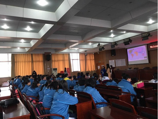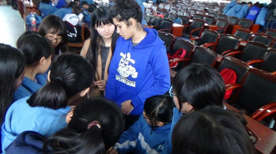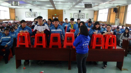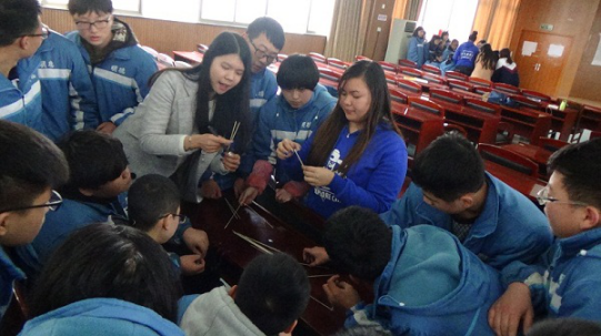 在明德讲堂,志愿者和同学们正式见面。六名国际志愿者以一段活力四射的舞蹈开始了本次交流活动?;疃橹?/font>Lily Yi向同学们详细介绍了AIESEC的理念:Every Generation Has a Chance to Shape the World,让同学们对AIESEC有了初步的认识。接下来,国际志愿者们用不同的方式介绍了自己的国家和文化,如印度籍的志愿者与同学们大谈印度电影《三傻大闹宝莱坞》,马来西亚籍志愿者向同学们讲述了国人熟知的运动员李宗伟和歌手梁静茹的事迹。在随后的互动环节,同学们分成四个小组,与志愿者一起进行游戏竞赛和节目排练。趣味十足的“面条叠塔”游戏激发了同学们无穷的想象力。而随后短短的三十分钟里,志愿者们带领的各个小组排练出完整的节目并呈现给大家。其中“太鼓达人”马来西亚籍志愿者小组所表演的“手鼓阵”、菲律宾籍志愿者小组所表演的菲律宾土著舞蹈赢得了满堂喝彩。