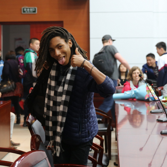 “嘻哈王子”高一K403班王宇杰主持中美小伙伴交流会