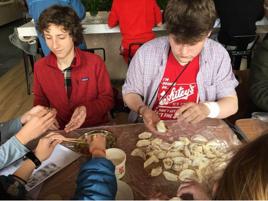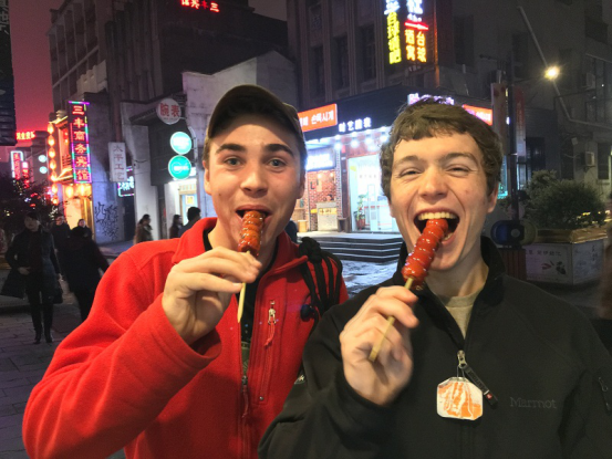 高一K402班王思仪、谢源向美国小伙伴介绍长沙美食