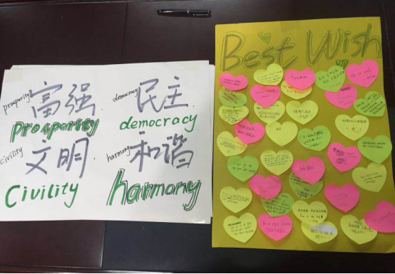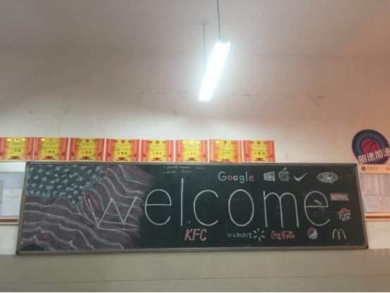 高一年级K403班谭颖龙为美国小伙伴们准备的创意黑板报
