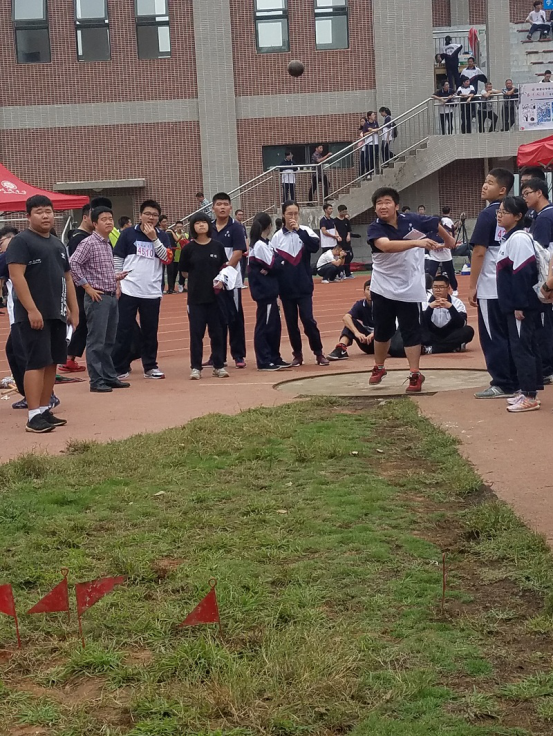 裁判把铅球比赛人员全部召集起来,宣布开始试球。章陈斌则是最活跃的一个,他大步流星的走上前去,拿起了球,在手上掂了掂。笑着说了句:“还可以?!贝铀难凵窭锟梢钥闯鏊杂谡獬”热淖孕?。随着裁判的命令一下,大家都各自候场去了,他则是目不转睛的盯着别人投球的动作,不断学习着。等待的时间总是短暂的,轮到他上场了。他迈着矫健的步伐,走向了投球位。他拿起球,那颗球在他手上显得无比的承重,因为他知道,他所托起的不只是一个简简单单的球,他托起的是整个班级的荣耀!
