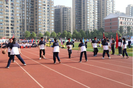 在各个学校领导老师致词入座后,国际部同学大方出场,作为运动会上一颗璀璨的新星,他们一个个朝气蓬勃,展现了学子们的新面貌。放眼望去,体育场地上,各个k426学子像即将踏上征途的士兵,等待着检阅。万人体育场上的网架结构和动人心魄的条幅誓言,表现了我们对运动会满腹热情??皇骄柿颐遣欢洗淳?。在蓝天白云绿草的映衬下,k426同学们动作整齐划一的篮球表演表达着团结与友爱,他们红色的加拿大发带也正是热血青春的表现,展示出学子们的自信和热情,让我们热血沸腾。