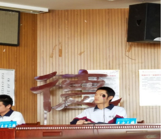 此次辩题为:设立政治围墙的好与坏。各个选手严阵以待,之前脸上放松的表情瞬间严肃。但我们的班长——欧阳佳庆从容地坐在位子上,虽然各辩论队看似风平浪静,暗地里已是剑拔弩张。随着裁判员的一声令下,双方开始了激烈的交战。