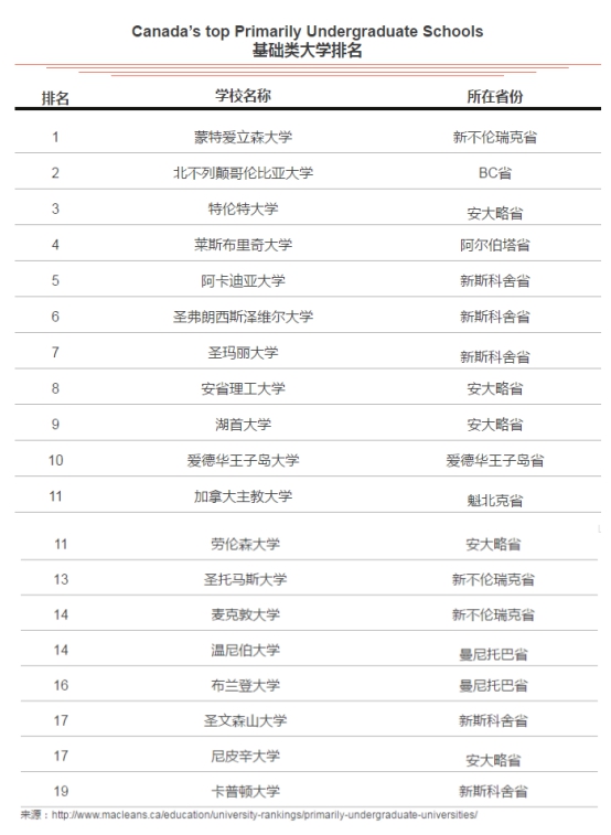 《麦克林》杂志(MACLEAN'S)每年发布的加拿大大学排行榜是加拿大唯一权威的大学排名榜单,对于加拿大公立大学各方面的比较和评估是学生升学以及留学选择的重要参考之一。