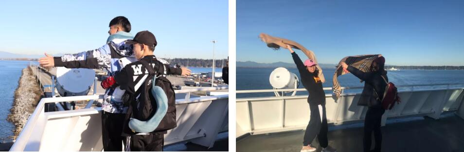 刚下飞机,同学们便为加拿大的美所震撼。尽管是冬季,温暖的阳光穿过湛蓝的天空,洒在同学们兴奋的笑脸上,在前往维多利亚的渡轮上,大家纷纷拿出照相机,摆出各种造型,捕捉这天然的美景。