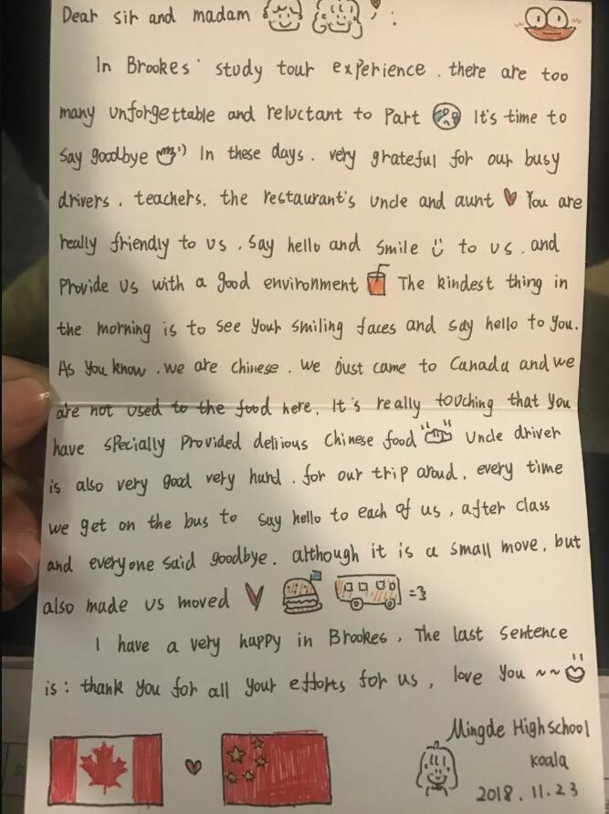 此次插班学习既锻炼学生在新环境下学会独立学习,也为学生提早树立目标提供了平台,助梦扬帆,培养国际化人才。整个学习过程愉快而充实,同学们既切身感受了当地的文化与环境,又融入校园,与当地学生直接交流,获得全新的学习经验,从而提升自己。明德国际部高一学生在期间体现出的认真、谦逊、守时、积极主动以及乐于学习也获得了当地师生的高度赞扬,推动了中国与加拿大的学术交流与合作。