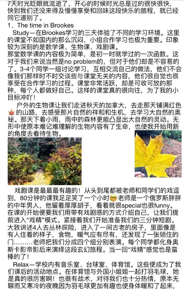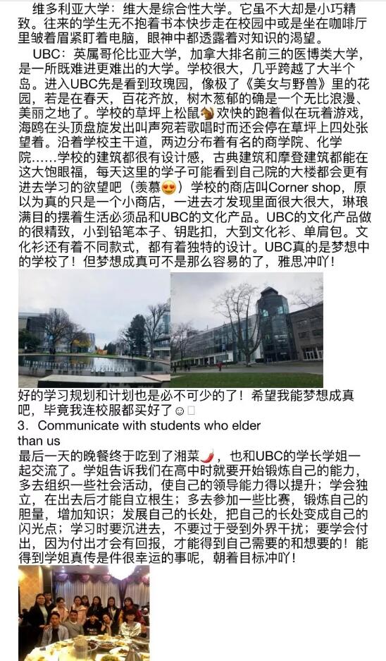 十多天的插班学习让同学们获益良多,纷纷用图片和文字记录这些美好的瞬间,正如学生们在文章中写到的:“学会付出,因为付出后才有回报,才能得到自己需要和想要的,全力冲刺考入心仪的加拿大学校,相信目标的实现就在不久的将来”。