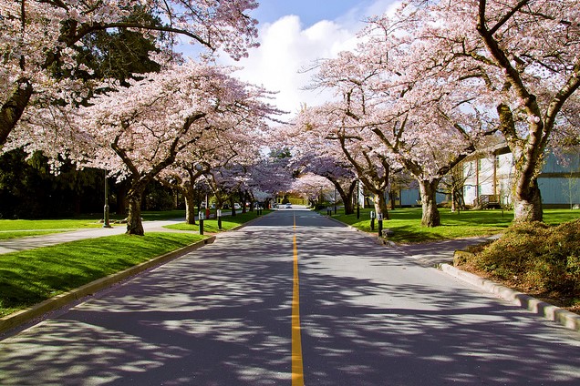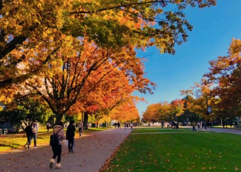 经受了温尼伯的严寒,我这怕冷的南方人毅然选择了报考UBC大学。 面朝大海,远眺雪山; 春天满园盛开的樱花雨;秋天踩着满地散落金黄的枫叶; 自习室图书馆的玻璃折射着七彩的阳光;博物馆收藏着巨大的鲸骨架,斑斓的艺术珍品和充满立意的画作;校内修有静心的日本花园,立着五彩的原住民图腾柱,展现着这个学校对各个文化的尊重和柔和;游泳馆、体育馆、滑冰场设施齐全; 时不时邀请着世界著名的学者来演讲,偶尔还有明星来举办个人演唱会、甚至在校内拍电影。在这样的地方生活和学习,本身已是种幸运。
