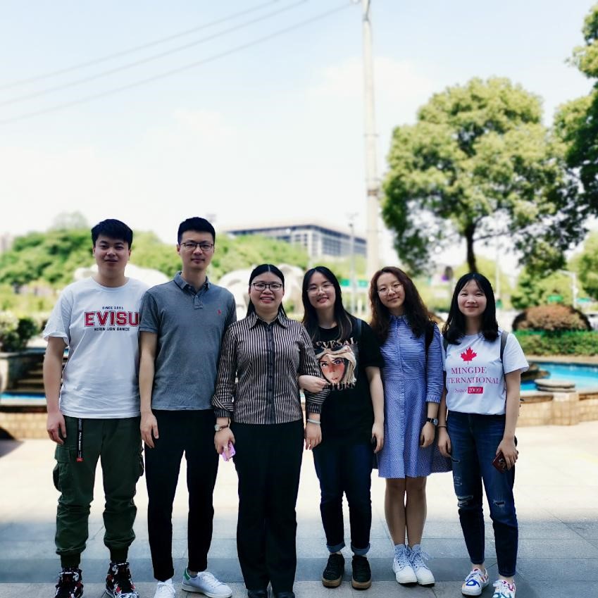 左一曾海然同学、左二陈子峰老师、左三班主任蒋易娟老师、右一袁晶欣同学、右二沈一诺同学、右三曹璇同学