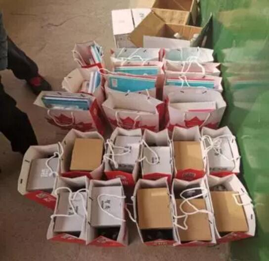本次活动的第三个流程为捐赠仪式。明德国际部师生及家长为十一位品学兼优的贫困生共募集了助学金三万余元,为十一名贫困生每人发放了2400元助学金,40个笔记本、4盒笔、以及计算器、书立和圆规等学习用品。与此同时,还为别的贫困生募集了14大袋棉衣和羽绒服。