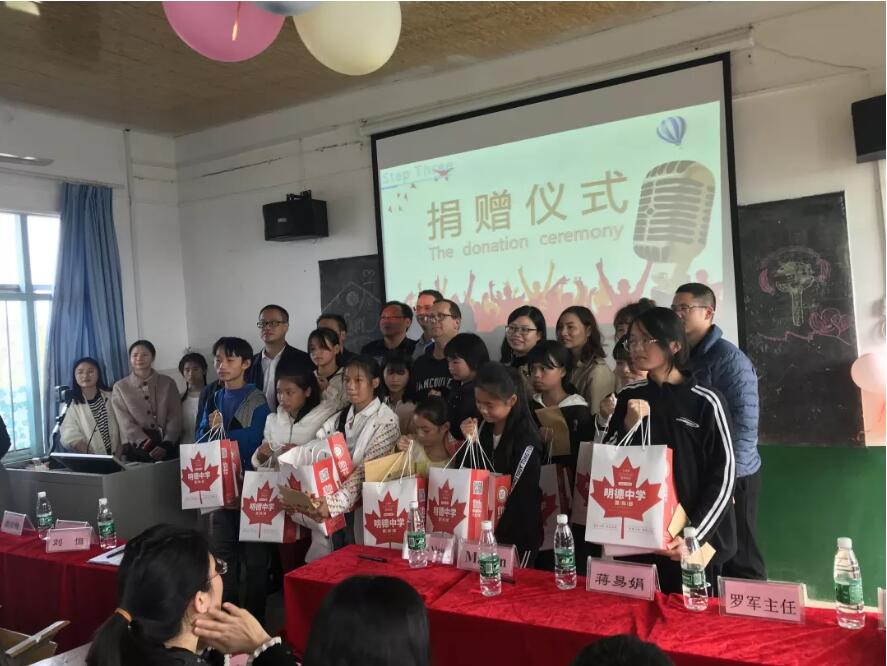 本次活动旨在更加一步增强明德国际部与杉木桥中学的交流,帮助当地贫困学生缓解学习和生活负担,由明德国际部的蒋易娟主任牵头,明德天心中学赴杉木桥中学的支教老师曹玲和向梅花牵线搭桥,郦家坪中心学校刘恒校长、杉木桥中学郑铭校长的大力支持,杉木桥中学全体老师共同组织完成。